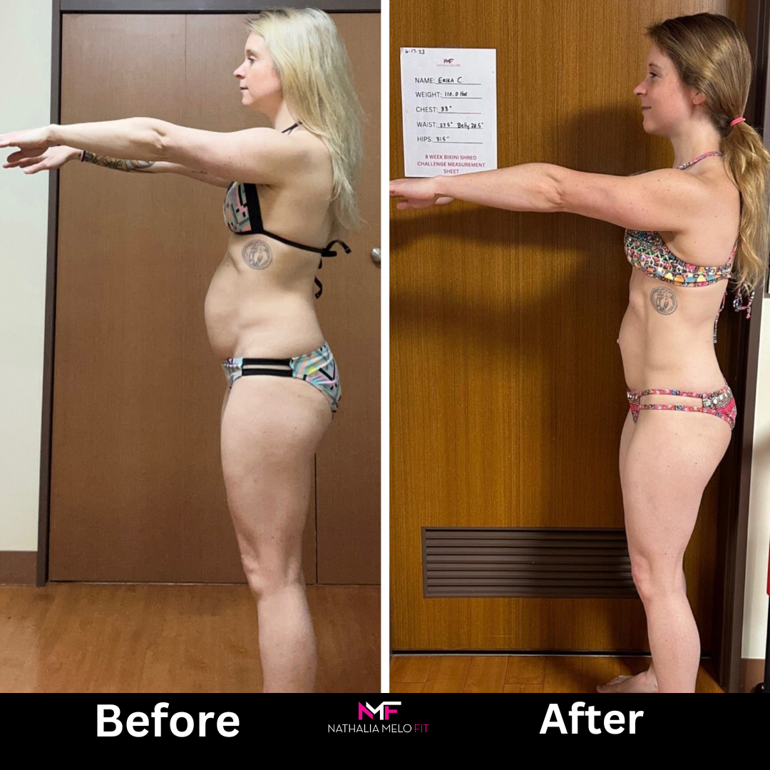 Stephanie is a working mom of 2, and this transformation happened in 8 Weeks with a cruise in between!