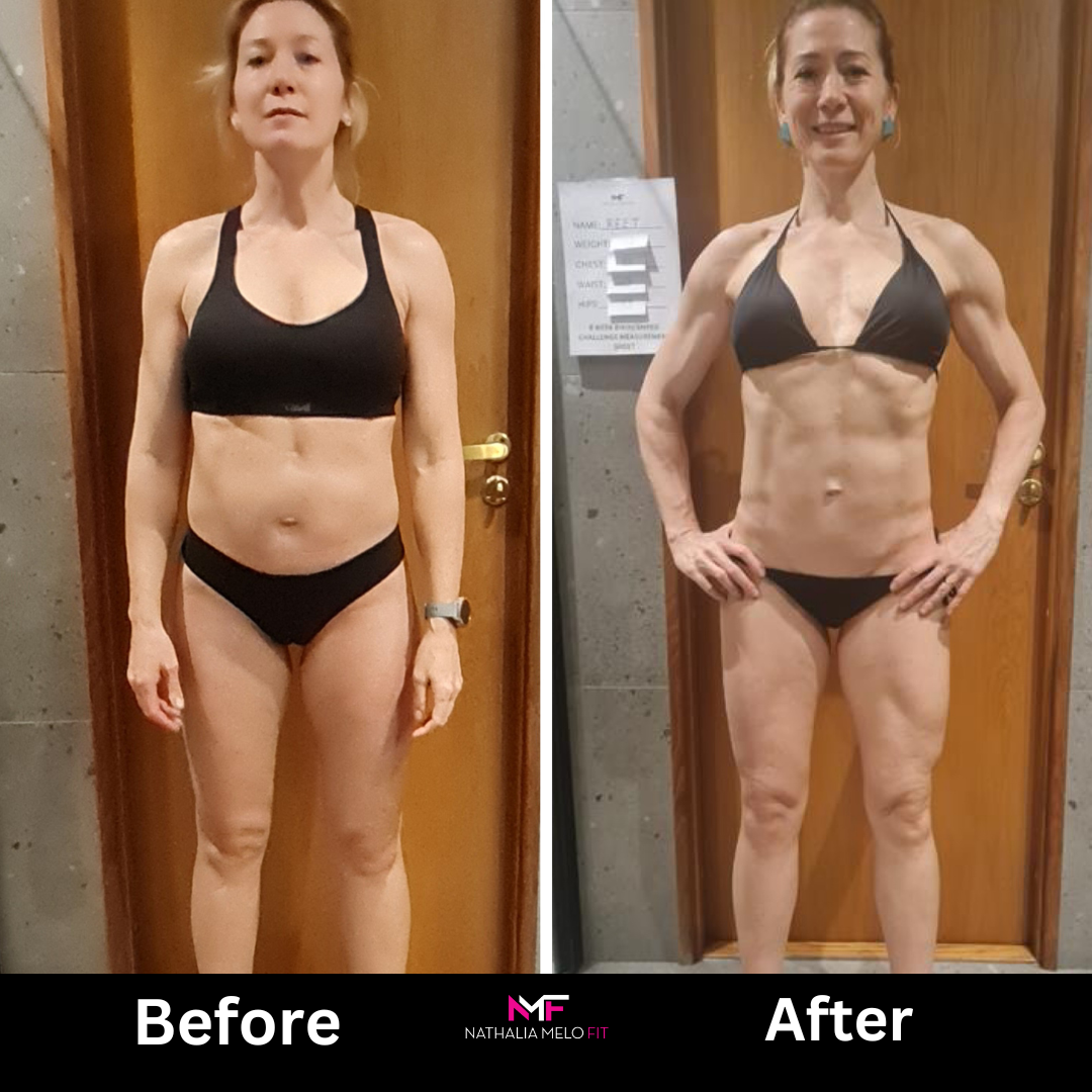 Juliana is an Executive mom of two, and in 5 months she lost over 20lbs while traveling at least once a month, and between these pictures, she spent 3 weeks on vacation!